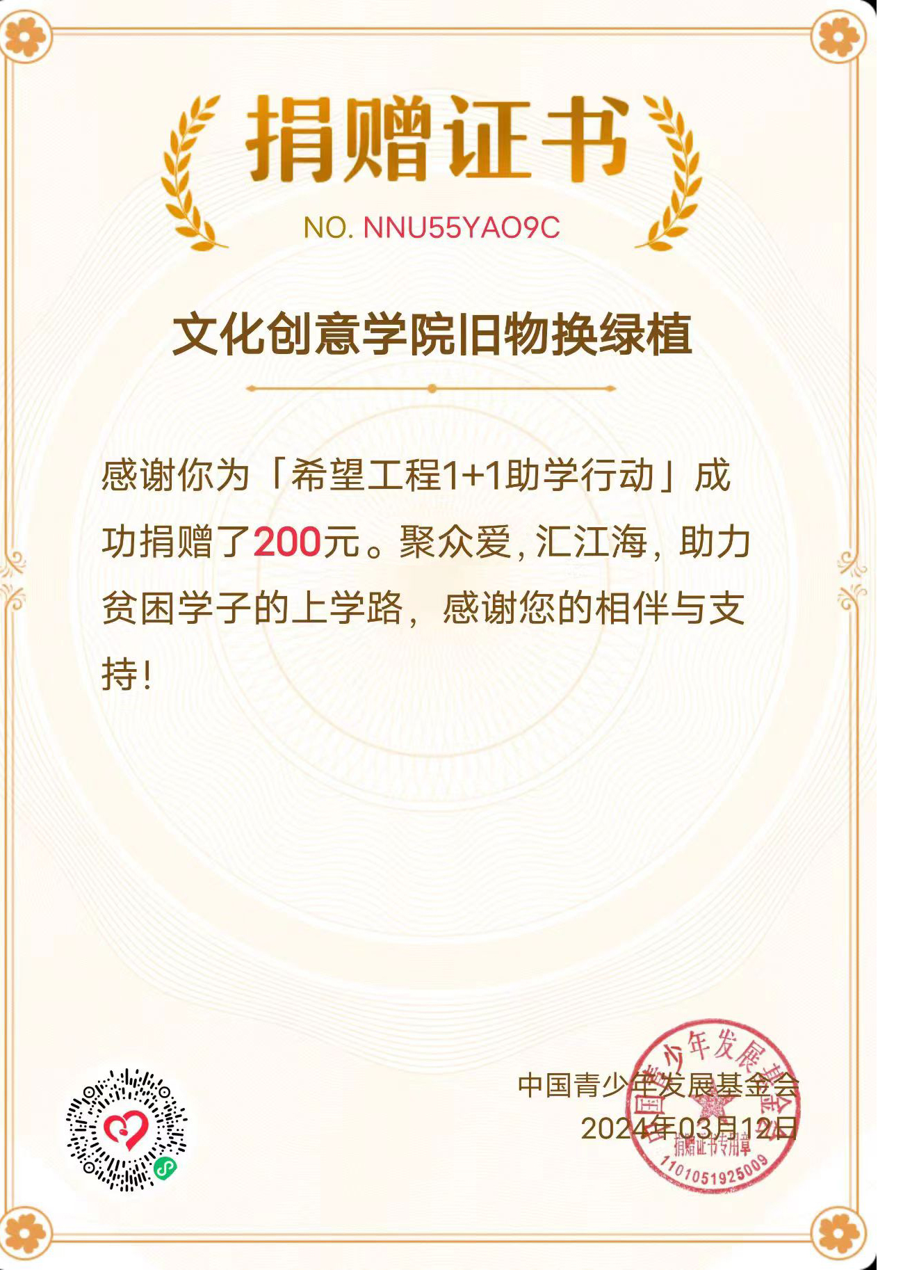 为弘扬文明之风,提倡低碳绿色生活方式,3月12日植树节当天,文化创意学院团总支在校园内举办了一场“‘植’此青绿”旧物换绿植活动。