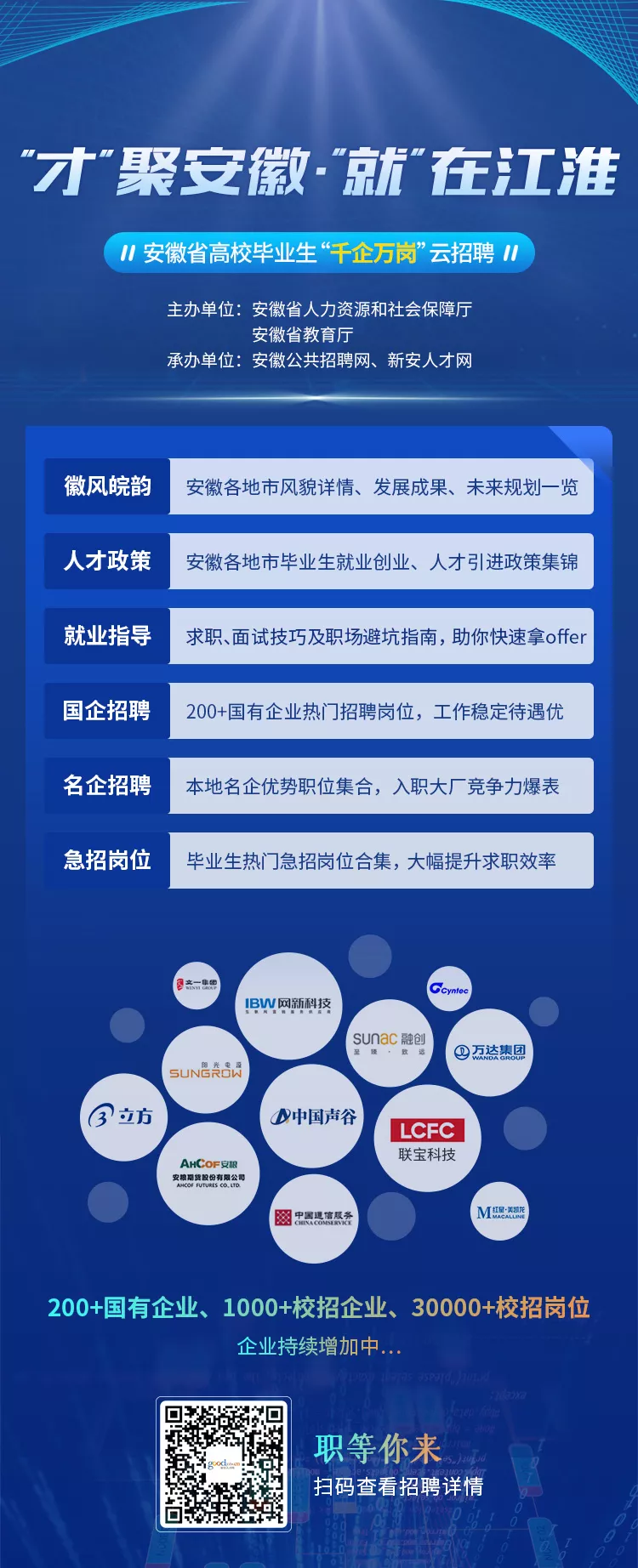 才聚安徽·就在江淮——安徽省高校毕业生“千企万岗”云招聘活动