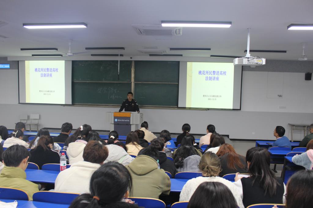 为进一步增强同学们的法治意识,接受法治教育,自觉遵纪守法,并且学会利用法律进行自我保护,做一名知法、懂法、守法的合格青年学子,12月15日下午,文化创意学院邀请肥西县桃花派出所副所长戴浩、郭庆芳警官为全院学生作法治教育专题讲座。讲座由文化创意学院党总支张克主持。