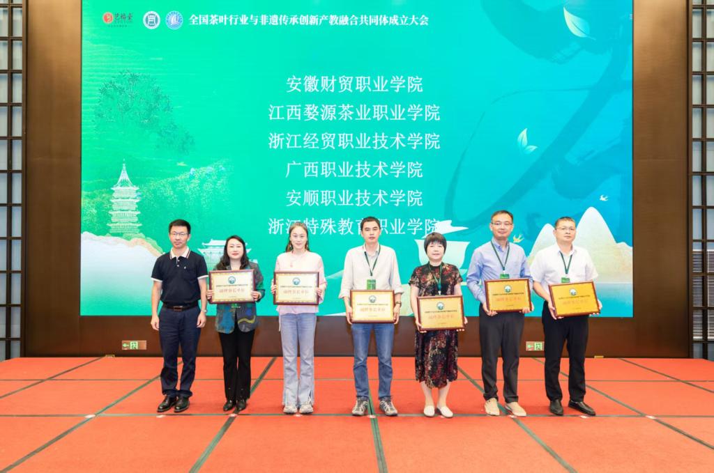 5月23日,由浙江农业商贸职业学院、浙江艺福堂茶业有限公司、信阳农林学院联合主办的全国茶叶行业与非遗传承创新产教融合共同体成立大会在浙江绍兴举行。根据大会议程,分别审议通过了《共同体章程》《共同体建设方案》《共同体第一届理事会名单》,共同体推选我校为第一届副理事长单位和常务理事单位。文化创意学院党总支副书记倪晶晶作为副理事长单位代表参与共同体启动仪式。