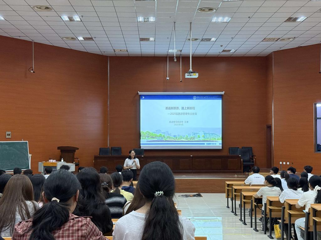 9月17日下午,文化创意学院旅游管理教研室在蜀山校区D101教室举办2025级新生专业教育,帮助同学们尽快熟悉所学专业,提升专业认知、端正专业思想、增强专业自信。