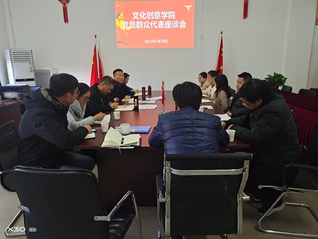 根据《中共bat365官方网站委员会关于印发2020年度领导班子民主生活会方案的通知》文件要求,1月29日上午,文化创意学院召开党员群众代表座谈会,党总支委员、教师党支部代表、学生党支部代表、教室代表共13名同志参加会议。座谈会由党总支书记张克主持。