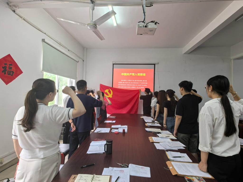 会上,杨延萍等六名预备党员逐一汇报了预备期内的思想、学习、生活等各方面情况,并向党支部提出转正申请。入党介绍人分别介绍了预备党员预备期间的考察情况,并提出同意转正的意见。经投票表决,杨延萍等六名预备党员均全票通过党员决议,成为中共正式党员。最后,六名新党员面对党旗庄严宣誓,他们用自己的铿锵誓言表达了对党和共产主义理想的坚定信念,承诺牢记政治责任和历史使命。