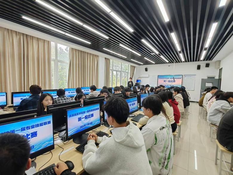 11月13日,未来技术学院第一届专业技能联赛第一轮比赛正式开赛。本次比赛共设14个赛场,均在专业实训室进行,未来技术学院651名大一新生全员参与。比赛依托安徽芒课教育科技有限公司研发的“芒课网”平台,比赛内容为C语言程序设计题。