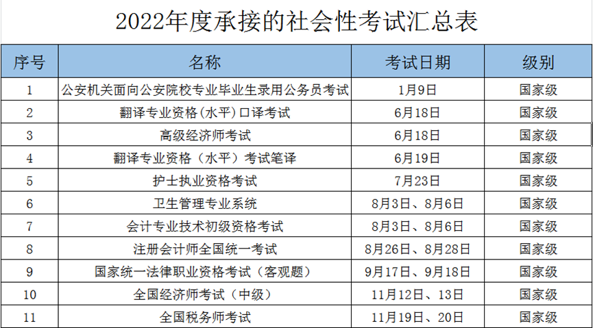 2022年现教中心在学校领导的大力支持下,在保障正常教学秩序前提下和做好疫情防控背景下,协同兄弟部门积极作为,充分挖掘资源,共承接11种社会化考试,累计服务考生6万余人次,通过技术支持和服务创收195.5万元(较2021年翻一番)。