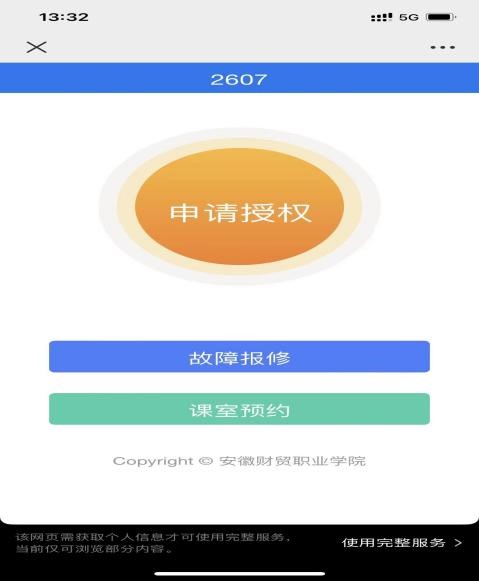 ②点击“使用完整服务”后点击“申请授权”填写相关信息后提交。