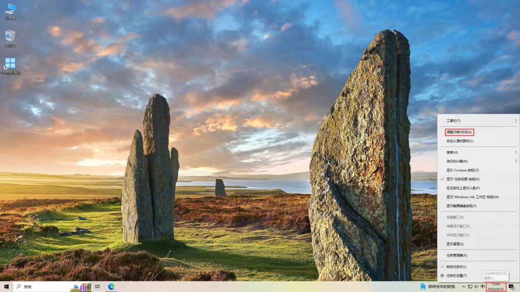右击桌面右下角的系统时间,在弹出的对话框中点击“调整日期/时间(A)”,如图1所示;进入日期时间设置。