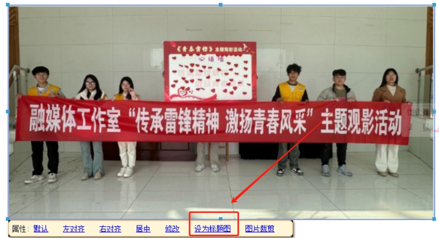打开文章编辑器,上传图片后,鼠标左键选中图片,选择“设为标题图”,如图1,即可完成标题图设置。