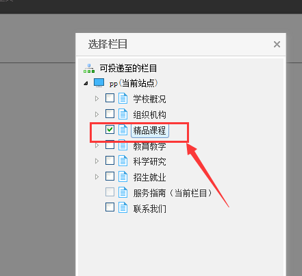 步骤二:在弹出的窗口中选择需要将文章投递到的栏目,如图2。
