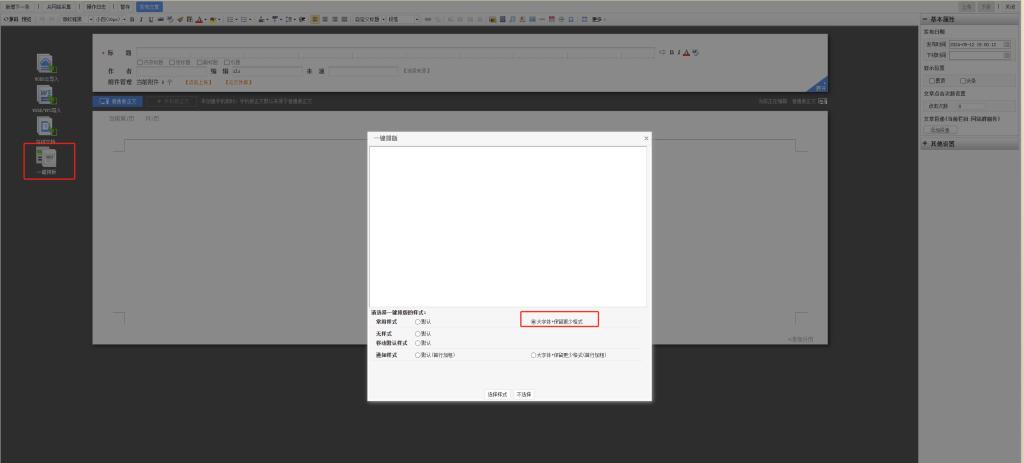 在文章编辑器中,应用一键排版,可以预览选择合适的样式,我校发文使用样式为:常用样式中的大字体+保留更少格式,为如图1所示;