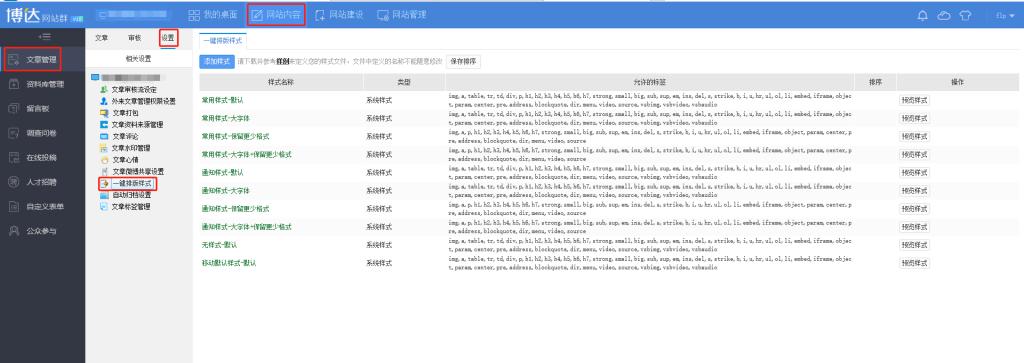 也可以在网站内容一文章管理-一键排版样式一添加样式中添加需要的样式,如图2。