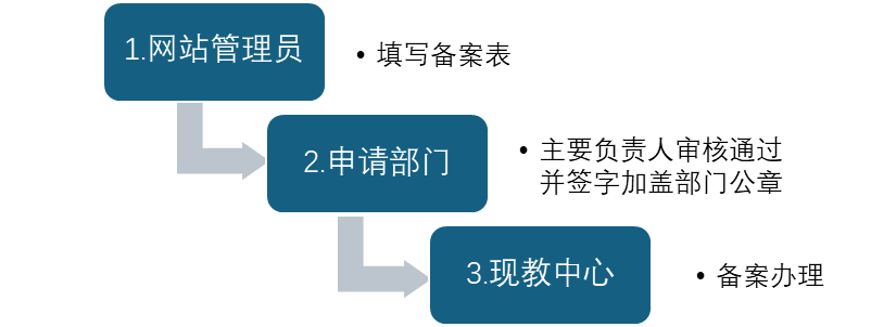 1.申请单位网站管理员须准确填写《bat365官方网站网站新建与修改登记备案表》,申请单位主要负责人审核并签字加盖部门公章。