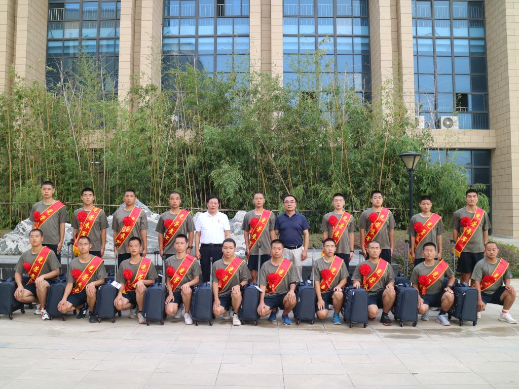 在役前训练基地,胡戴新询问了他们的训练情况、生活情况和需要解决的问题,为参训的19名“准新兵”送上了纪念品,并代表学校向参军入伍学生提出殷切希望:要坚定信念,完成角色转变;要忠于职守,苦练军事技能;要严守纪律,安心部队生活。他表示,学校将继续做好后续保障工作,尽最大努力让入伍学生消除后顾之忧。