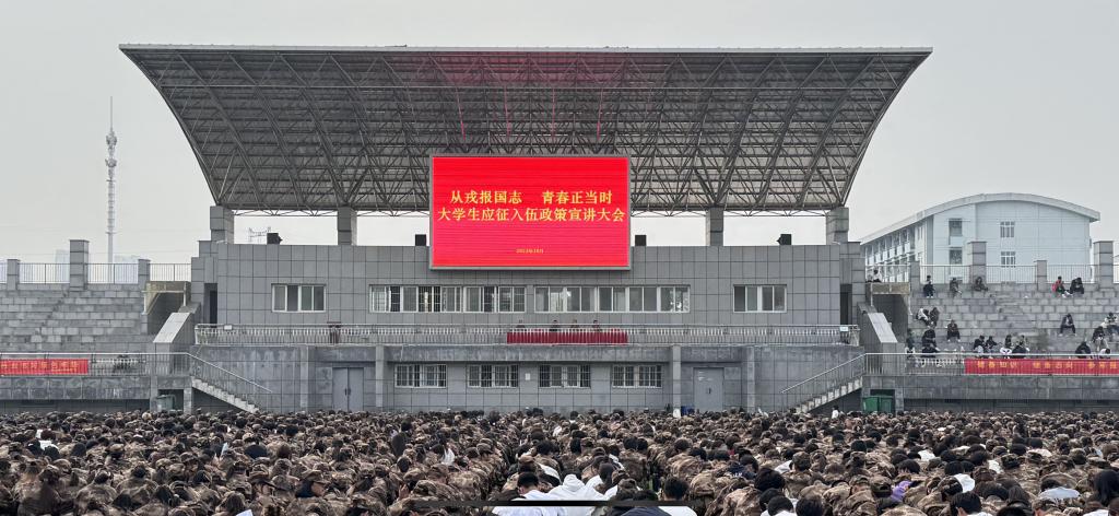为深入贯彻落实习近平强军思想,推进新时代强军事业,进一步激发广大学子携笔从戎、献身国防的热情,充分调动学生报名参军积极性,10月27日下午,学校征兵工作站利用军训期间联合肥西县人民武装部在翡翠校区田径场举行2023级新生应征入伍政策宣讲大会。2023级全体新生以及有入伍意向的学生代表参加了会议。
