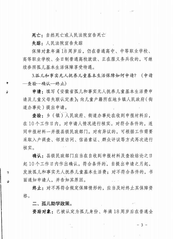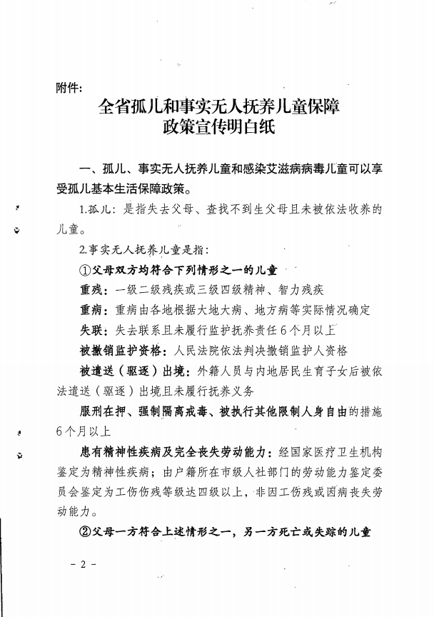 安徽省孤儿和事实无人抚养儿童保障政策宣传明白纸
