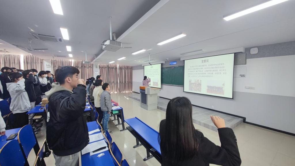 本次会议从做好公寓管理服务角度出发,学生公寓自律委员会学生干部代表朱诗雨带领全体学生干部宣誓,以立足公寓、加强校风学风建设为目的,号召大家要在思想政治意识方面起到引领作用。