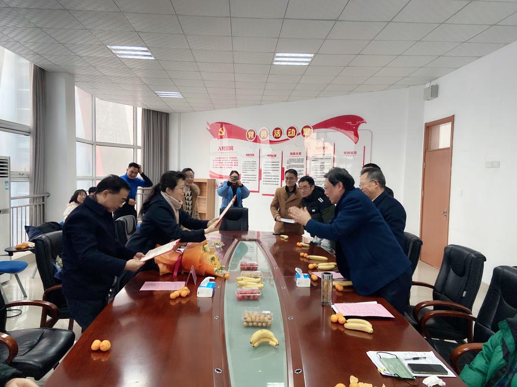 岁月可回首,深情度芳华。刘银国、胡戴新分别为许勇、汤亦瑾两位教师颁发了光荣退休证书,全体人员合影留念。会议在友好、热烈、和谐的气氛中圆满结束。(供稿:王峰 审稿:杨声 刘葆)