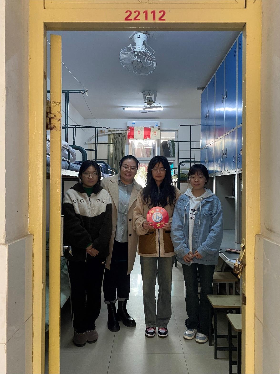 检查组一行对学生公寓内部的安全及卫生情况进行细致检查,其中重点排查违规电器、宿舍卫生情况以及宿舍内消防隐患等安全问题。走访发现,大部分学生宿舍整体能够保持干净整洁的室内环境,学生普遍遵守公寓安全管理规定,但依然存在个别宿舍违规问题。检查组成员做了详实记录并耐心督促学生及时整改。