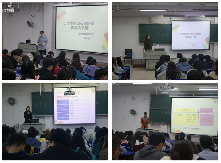 3月16日晚,心理健康教育中心主任汤亦瑾,心理咨询师李杉杉、王思,兼职心理咨询师刘凯分别在6103、6102、6202、6302同时开讲,讲座题为“大学生常见心理问题与危机干预”。讲座中,四位老师与寝室长共同探讨了什么是心理问题,大学生常见心理问题的表现与识别方法,重点讲解了心理危机状况的发现与处理。寝室长是一个关键岗位,每天和室友朝夕相处,希望全体寝室长切实承担起自身职责,密切关注室友心理状况,对于室友问题能够及时发现、尽早反馈,积极引导有需求的同学到心理健康教育中心求助专业心理咨询与帮助,真正发挥出寝室长在学生心理健康方面的预警与反馈功能。