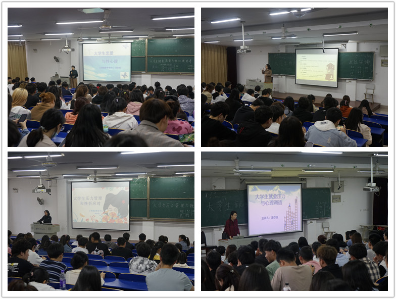 汤老师主讲的两个专题是“大学生健康恋爱与性心理培养”和“大学生就业压力与心理调适”,这两个专题的是大学生活中最常见和最难处理的心理问题。“大学生健康恋爱与性心理培养”汤老师主要从当代大学生恋爱中出现的误区和问题着手,援引现实生活中的案例,讲述了关于爱情的心理学研究、理性之爱与非理性之爱、恋爱对大学生心理健康的影响等,引导着学生提高爱的能力,树立正确的恋爱观;“大学生就业压力与心理调适”以一个生活中的真实案例为引,为面临就业问题困扰的大学生们在职业生涯规划方面辅以心理学的支持与帮助,并赠九字箴言“多看书,学技能,强身心”来鼓励同学们为未来努力奋斗。