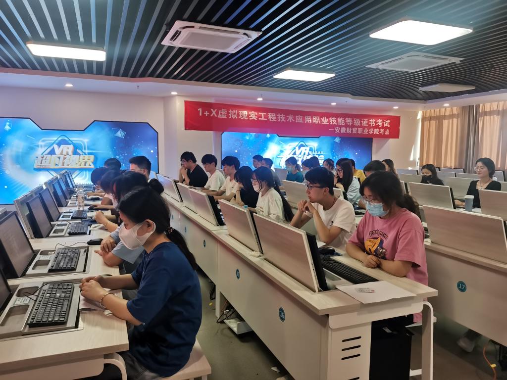 6月7日,我校1+X虚拟现实工程技术应用职业技能等级证书(初级)认证工作,在虚拟现实综合实训室A803顺利进行,信息工程学院共30名学生参加了此次认证。