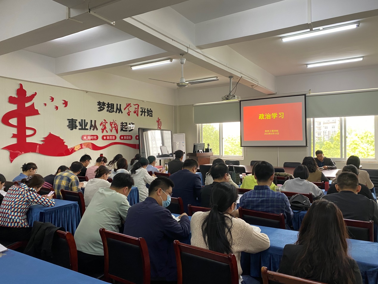 5月10日,信息工程学院开展主题教育专题学习,深入学习《习近平新时代中国特色社会主义思想专题摘编》第十一部分“坚持在发展中保障和改善民生”。学习会由信息工程学院党总支副书记张伟伟主持,全体教师党员参加会议。