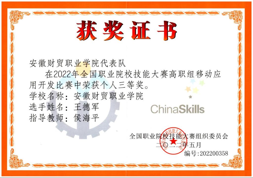 图5 2022年全国职业技能大赛“移动应用开发” 赛项获三等奖(国家教育部)