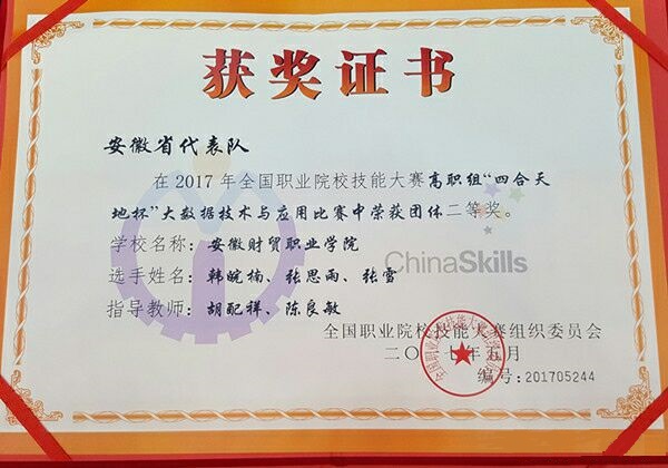图7 2017年全国职业技能大赛“大数据技术与应用”赛项获二等奖(国家教育部)