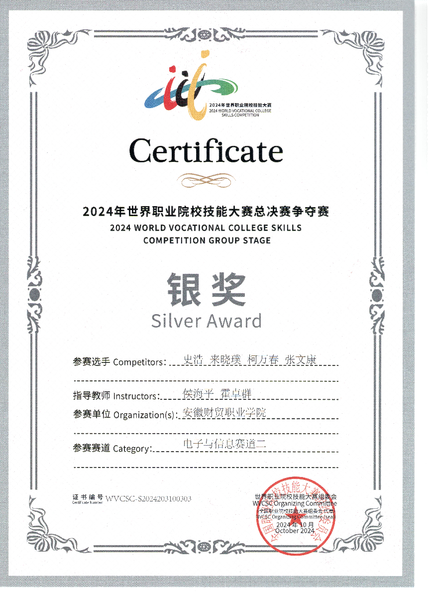 图2 2024年世界职业院校技能大赛“应用软件系统开发”赛项中获银奖(国家教育部)