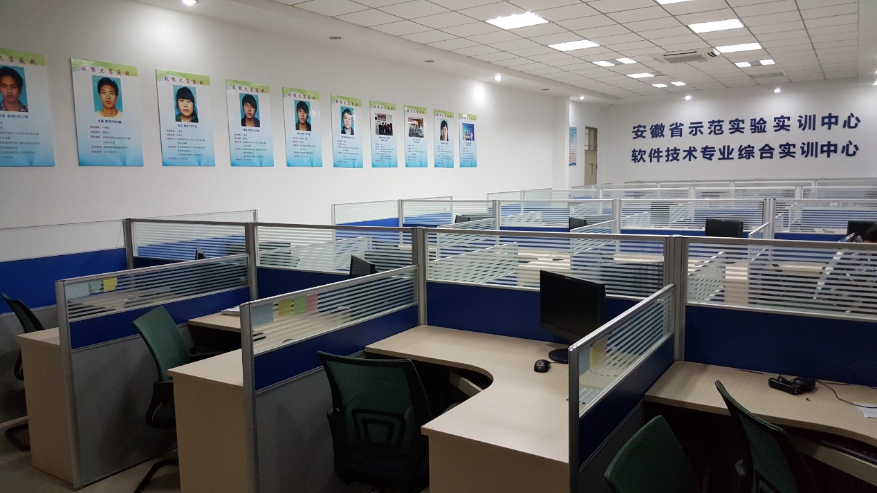 软件技术实训室配备45台分体式电脑,按照企业办公场所进行设计,实践企业级开发流程“需求分析、软件设计、代码实现、程序调试与测试、部署、上线运行维护”,旨在让学生了解企业开发规范和标准流程,通过企业实际项目全面提升学生综合能力和综合素质。计算机装有.Net、Java、AI、Web等开发方向的行业主流开发软件,可以满足学生开展各类不同领域的软件开发工作。