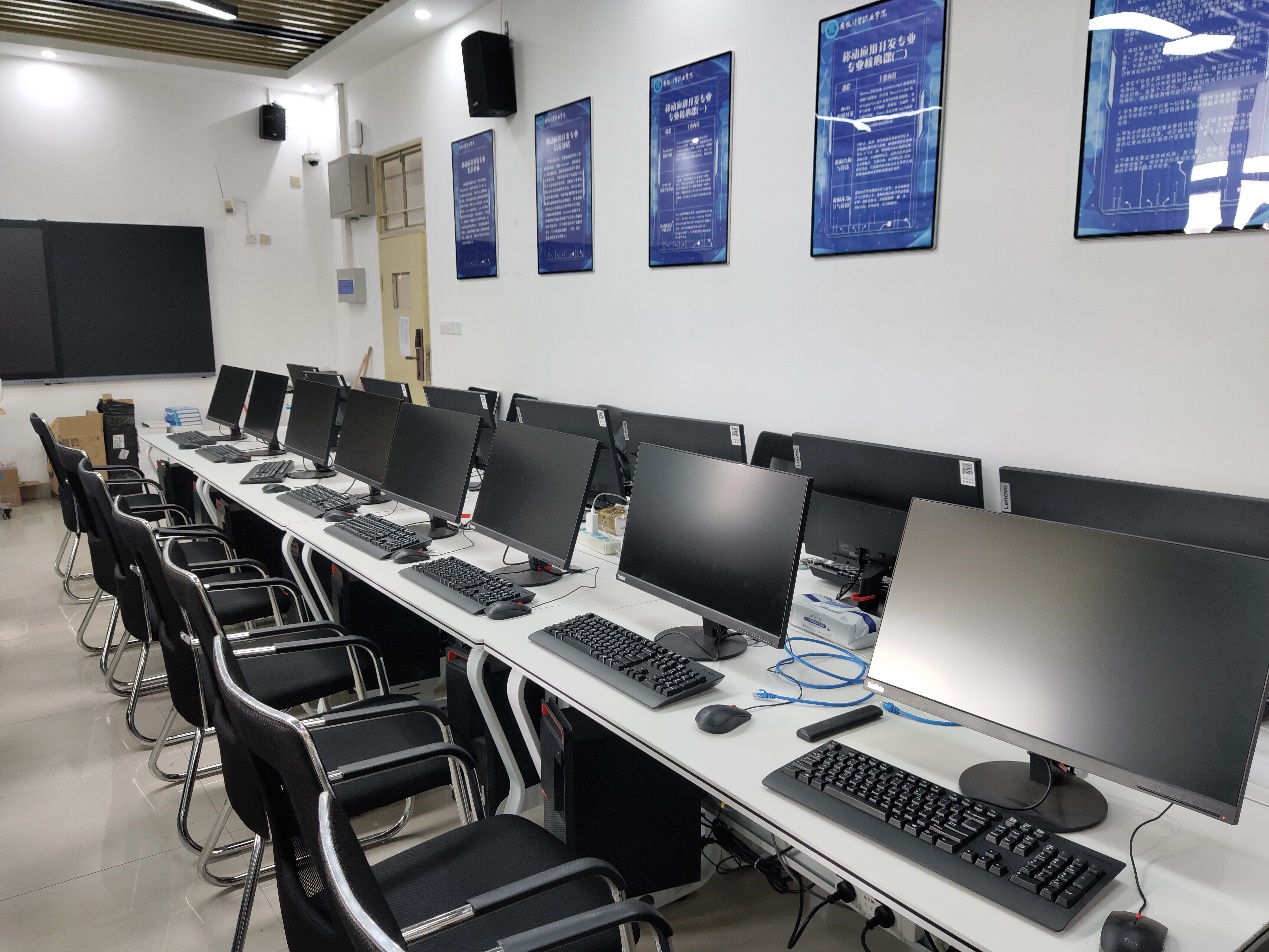 软件与移动应用开发实训室配备36台分体式电脑,按照Web前端开发、Web服务器开发、移动Apps等3个方向选配服务器和开发级别的计算机,满足《Java面向对象开发》、《Web前端开发》、《Android应用开发》等课程的实践课程训练,通过配有的课程资源和实训平台让学生参与企业真实项目,全面提升学生综合能力和综合素质。计算机装有Android、AI、Web前端、小程序等开发方向的行业主流开发软件,可以满足学生开展各类移动Apps及移动服务器的软件开发工作。