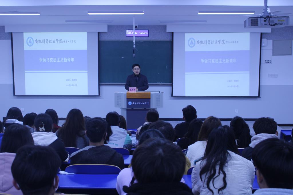 为了坚持不懈地用马克思主义中国化的最新成果武装青年大学生,不断提升学生干部的思想政治素质,信息工程学院于11月24日下午在6202教室成功举办“青马工程”学生干部培训班,共有125名学生干部参加了此次培训,党总支副书记张伟伟和团总支书记梅云凤分别进行了授课。