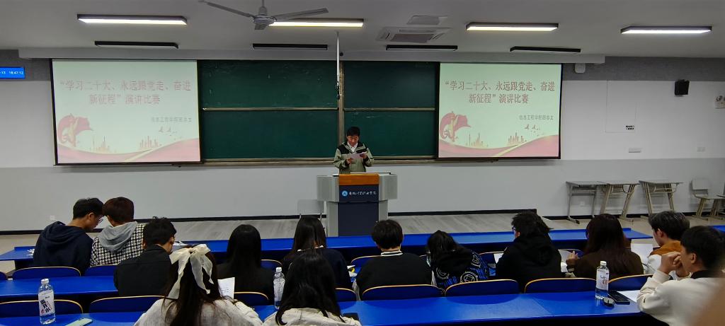 为丰富校园文化生活,提高学生文学素养,信息工程学院于11月13日晚开展“学习二十大 永远跟党走 奋进新征程”主题演讲比赛活动。