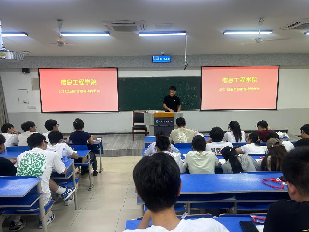 为进一步做好2024级新生入学接待工作,信息工程学院于9月5日在5102教室召开2024级迎新志愿者动员大会,团总支书记岳吉方以及全体迎新志愿者参加本次会议。
