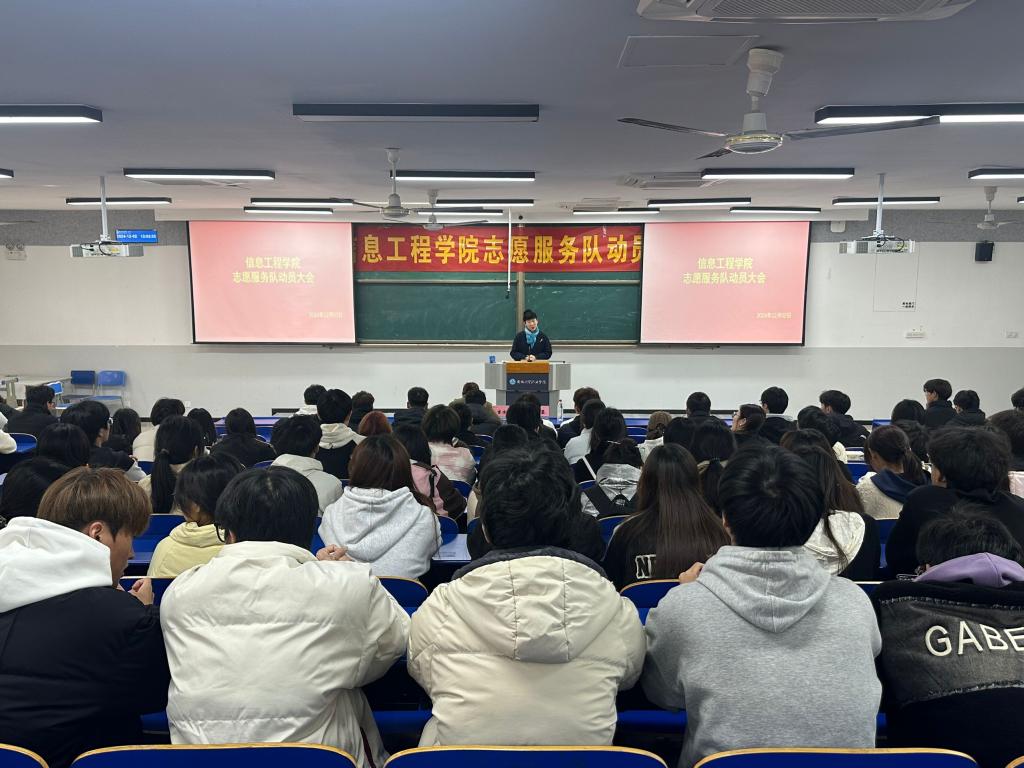2024年12月2日中午12点,信息工程学院2024级志愿服务分队启动大会在教学楼6-103教室召开。学院党总支副书记丁蓉、团总支书记岳吉方、团学干部和志愿者们参会。