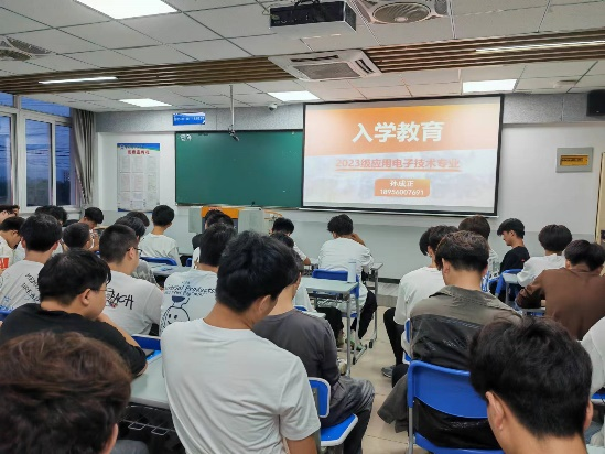 9月20日、21日晚,应用电子技术专业2023级新生共95人、无人机应用技术专业2023级新生共84人在分别在2609教室和2605教室进行了专业教育。教师支部书记、教研室副主任孙成正担任主讲。