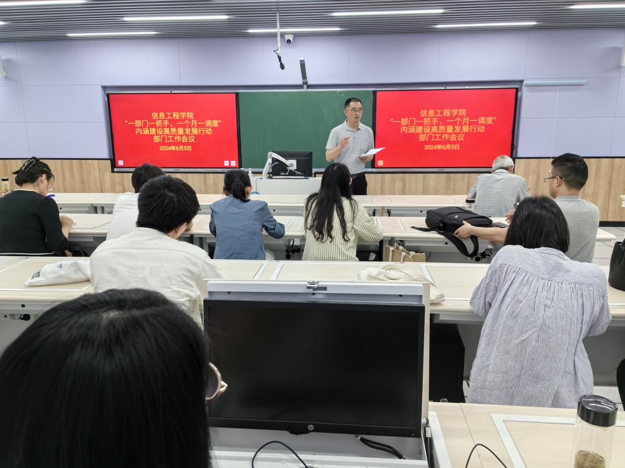 6月5日下午,信息工程学院组织召开“一部门一抓手,一个月一调度”内涵建设高质量发展行动动员会,信息工程学院院长濮光宁主持会议,全体教职工参加会议。