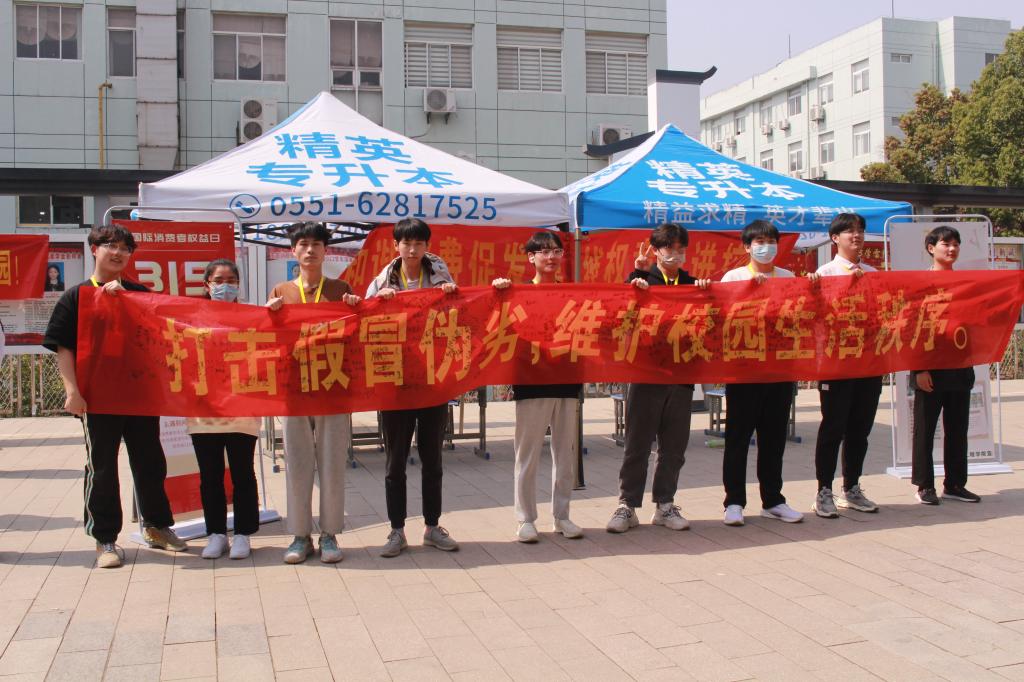 3.15维权,我们与你在一起。3月15日中午,在校园内向同学们发放传单,宣传维权法律。号召同学们维护合法权益,向不法商贩说“不”。