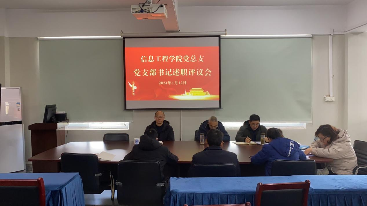 1月12日中午,信息工程学院在综合楼313教师办公室开展党支部书记述职评议会,会议由党总支书记邓庆安主持,信息工程学院党总支委员和五位党支部书记参加会议。