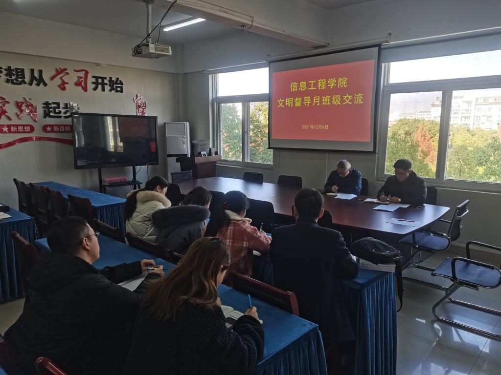 根据学校《关于进一步加强学生校园文明规范的通知》院办发〔2021〕38号文件的要求,信息工程学院近期开展一系列学生文明素养教育活动,并于12月6日召开文明督导月班级工作交流活动。