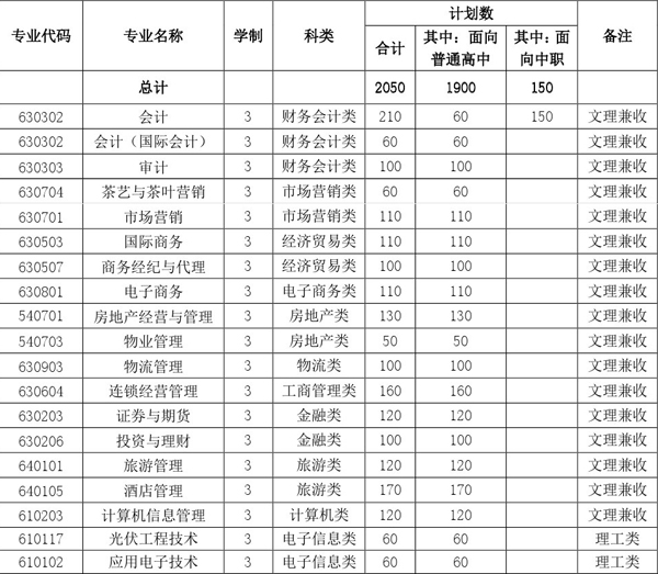 1.免试方式招收的考生其招生计划包含在分类考试总计划内。