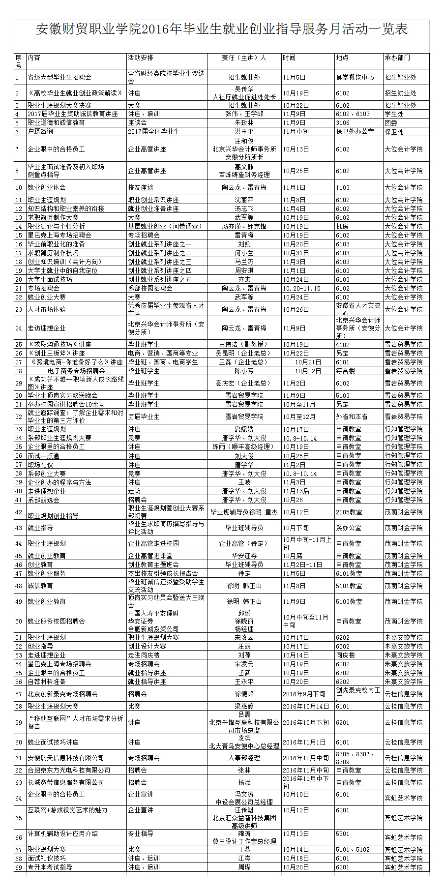 bat365官方网站2016年毕业生就业创业指导服务月活动一览表