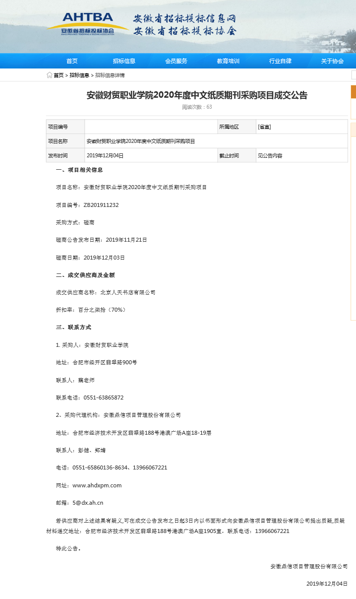 转发bat365官方网站2020年度中文纸质期刊采购项目成交公告