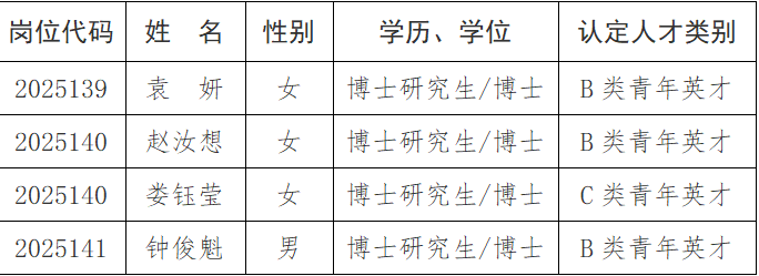 bat365官方网站关于2025年度公开引进事业编制高层次(博士)人才类别认定结果公示