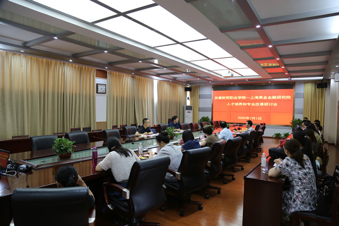 为进一步推动专业改革,7月1日下午,学院与上海高金金融研究院召开金融人才培养和专业改革主题研讨会。金融科技创新联盟副秘书长、上海高金金融研究院专家顾问委员姜振兴,众安科技高级顾问张宝峰出席会议并参与会议讨论。研讨会召开前,学院党委书记张志祥会见姜振兴一行。学院党委委员、纪委书记何翔出席研讨会,茂荫财金学院相关人员参加会议。