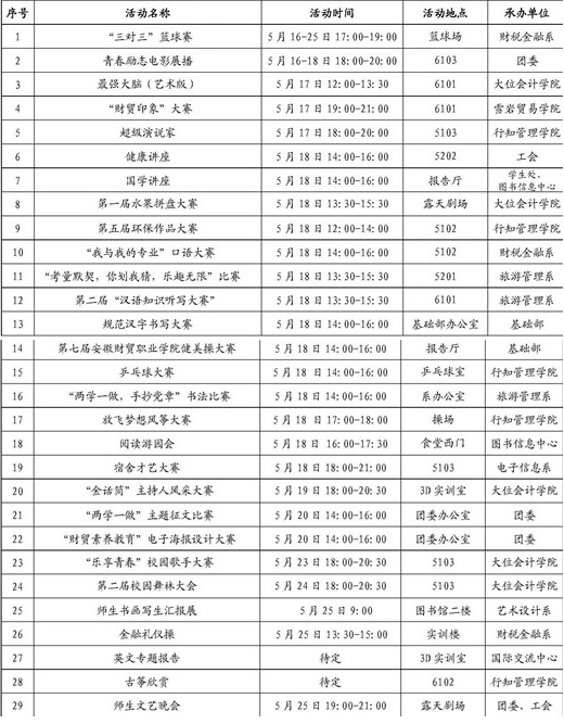 第十三届校园文化艺术节活动项目一览表 (2016.5.16—2016.5.25)