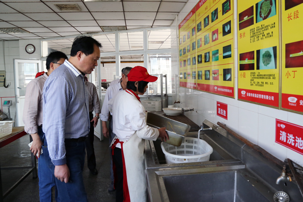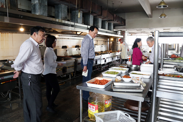 检查组仔细察看了食堂的食品仓库、备餐间、烹饪间等场所,对后厨卫生、餐饮具消毒、索证索票等进行了全面检查,并详细询问了饭菜花色品种、食物留样、工作人员健康检查等情况。