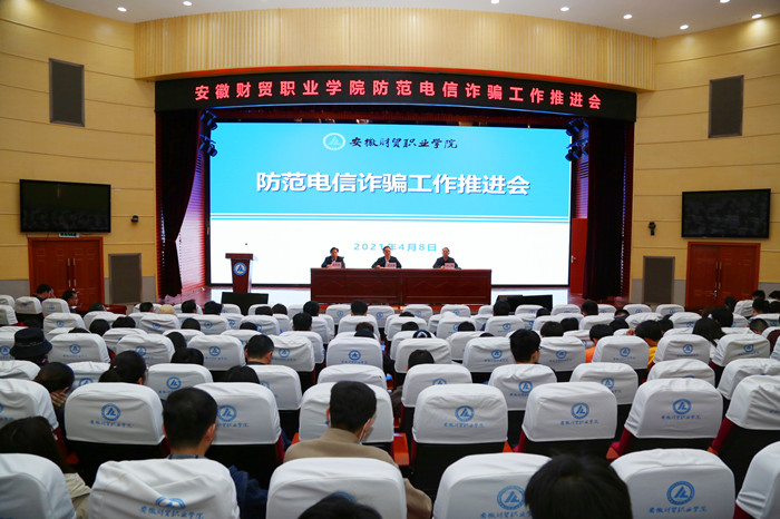 4月8日,学院在图书馆报告厅召开防范电信诈骗工作推进会,旨在深化平安校园建设,进一步提高师生对电信诈骗的识别与应对能力,增强师生对电信诈骗的防范意识。学院党委书记张志祥,党委委员、副院长胡戴新出席会议。党委副书记、纪委书记何翔主持会议。