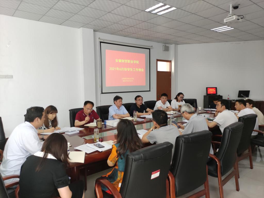 6月11日上午,学校在学生事务中心会议室召开学生工作会议,学校党委委员、副校长胡戴新主持会议,学生处、总务处、团委相关人员,各二级院部党总支书记、副书记参加会议。