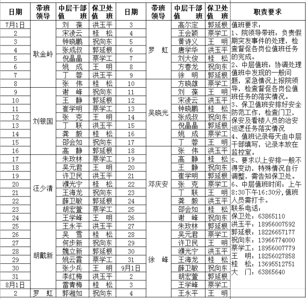 2017年暑期干部值班表